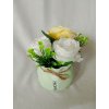 Aranžmán "HOME" v rôznych variantoch či už vo farbách jemne žltej, ružovej alebo zelenej a umelými kvetmi kamélie,čerešne, ruže, sedmokrásky spríjemnia Váš priestor bytu, domu a prinesie kúsok prírody.